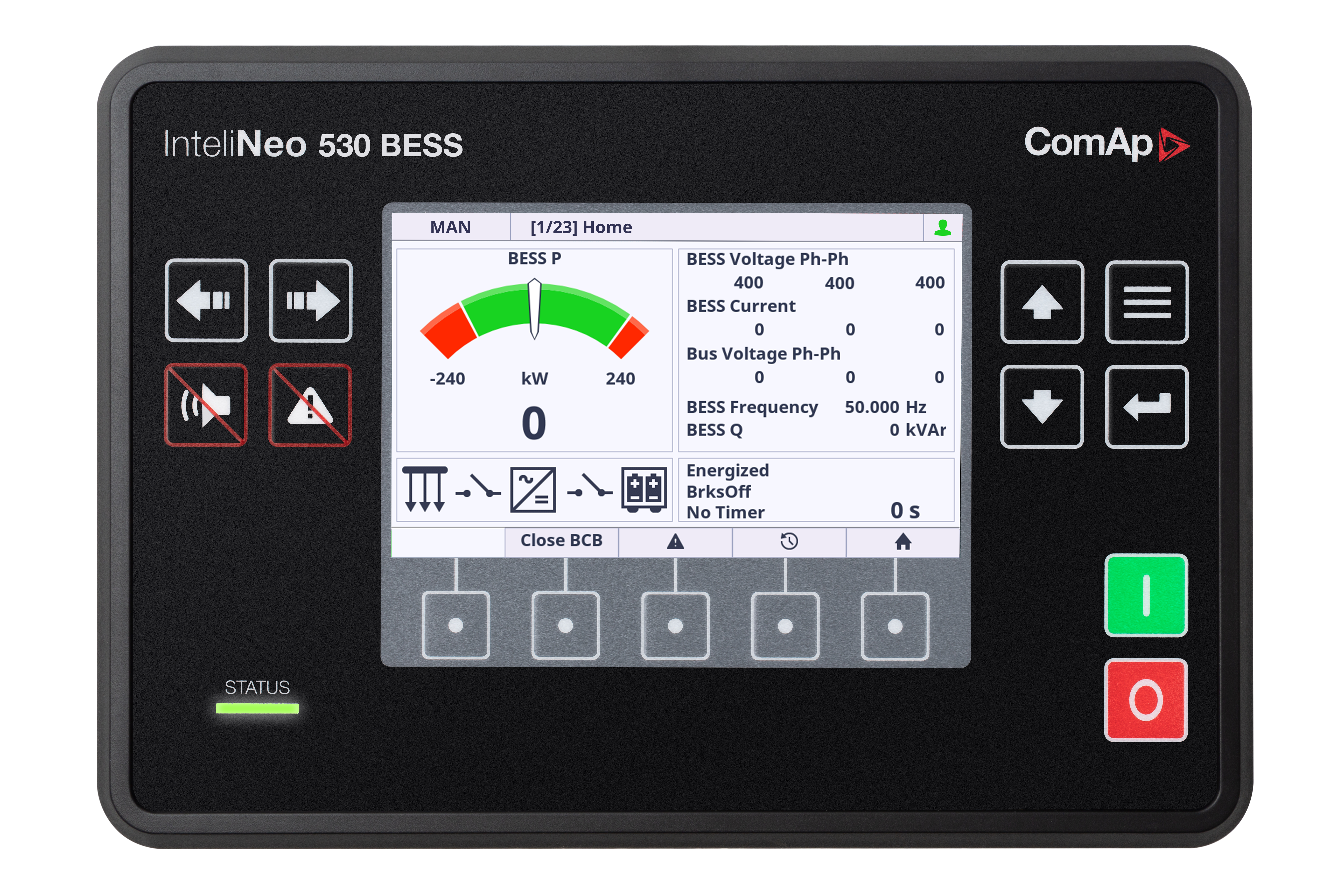 ComAp’s dedicated BESS control solution, the InteliNeo 530 BESS, is designed to make the complexity of battery energy storage systems simple. The controller manages energy flows in real time, optimising battery performance and supporting applications such as peak shaving, grid stability, and black-start capability. With open communication protocols and flexible configurations, it integrates easily with gensets, renewables, and other power assets across a wide variety of off-grid and grid-connected sites. This gives operators the confidence that their BESS is operating safely and efficiently and delivering maximum benefit to their power system.